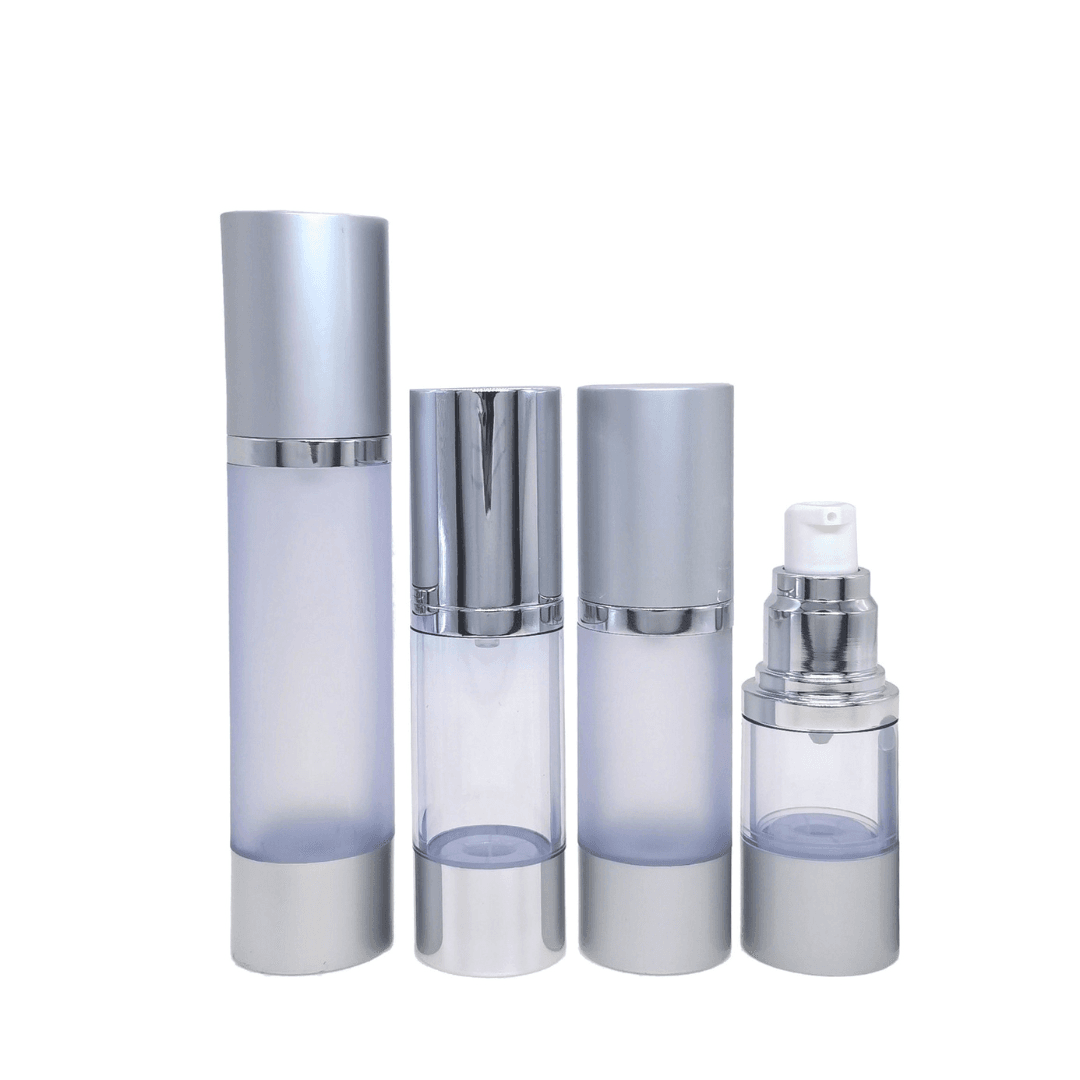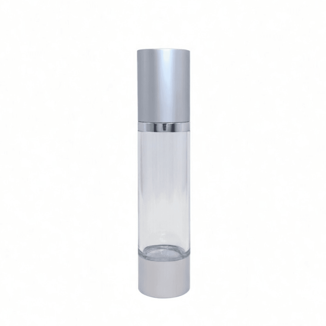The 50ml Acrylic Airless Pump Bottle with Matte & Glossy Silver is a premium packaging solution designed for high-end skincare and cosmetic formulations. Crafted with durable acrylic and a sophisticated gold finish, this airless bottle enhances product presentation while ensuring optimal product protection.